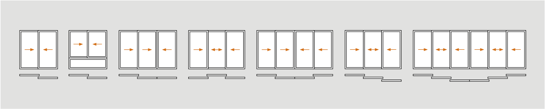 Nuestro sistema de correderas dispone de 3 perfiles de marcos diferentes permiten puertas y ventanas deslizantes de hasta 6 hojas.